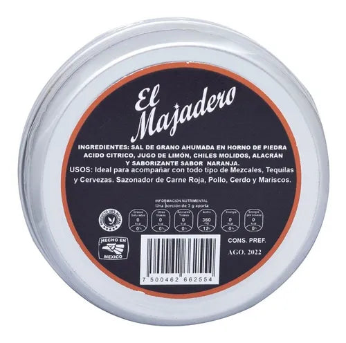 "EL MAJADERO" SAZONADORES y SALES ARTESANALES -Un Ritual de Sabor-¡No encontrarás nada igual! ¡Único en el mercado con Alacrán!Elaborados Artesanalmente por las manos de mujeres indígenas de la sierra del Mezquital en Durango México. Ideal para acompañar todo tipo de Mezcales, Tequilas y Cervezas; Carne Roja, Pollo, Aves, Cerdo, Mariscos, Pescados, Frutos Secos, Frutos Dulces, Snacks y Verduras.----------------------------------------------------------------------------------------SAZONADOR GOURMET CON SAL DE ALACRÁN Y NARANJA - LATA 100gr -DESCRIPCIÓN: El sazonador gourmet sabor Alacrán y Naranja se distingue por su acentuado aroma entre ahumado y frutal, sabor intenso, conservando la característica que lo distingue de otros sazonadores como lo es la presencia de alacrán seco y triturado (previamente tratado para extraer el veneno y poder ser apto para el consumo humano), también tiene entre sus elementos sal de mar ahumada en agave, chile guajillo o Puya molido, ácido cítrico y jugo de limón. El extracto natural de naranja es uno de los ingredientes característicos de este sazonador corresponde a una fruta que es un poderoso antioxidante por la gran cantidad de vitamina C que contiene, por ellos favorece la cicatrización y refuerza el sistema inmunológico. También contiene Calcio, magnesio, betacaroteno, ácido fólico, fósforo, potasio, cobre, zinc, ácido málico y cítrico. El chile Guajillo o Puya que se utiliza es producto del valle de Poanas en Durango; se caracteriza por ser picante y de sabor fuerte, es de la familia del chile de árbol pero generalmente es más largo que éste; el ingrediente activo es la capsaicina, la cual le da esa característica picante; posee propiedades termogénicas acelerando así el metabolismo hasta en un 25%, también tiene efectos antiinflamatorios, analgésicos y antimicrobianos, contiene grandes cantidades de vitamina C y A, todas éstas características lo convierten en un elemento sumamente nutritivo dentro del Sazonador con Alacrán El Majadero. Debido a su versatilidad, el chile puya, es muy utilizado en la cocina, para elaborar salsas y para acompañar sopas y muchos otros platillos por lo que también es muy bien recibido dentro de los ingredientes de El Sazonador Gourmet El Majadero para adicionar tanto a platillos frescos como calientes un sabor especial, así mismo para acompañar las diferentes frutas de temporada y para degustar destilados mexicanos como el Mezcal, el Sotol, la Raicilla y el Tequila. También lo puedes disfrutar preparando la novedosa CHELACRÁN escarchando tu cerveza favorita.Otro de los ingredientes es la Sal de mar Ahumada El Majadero, ahumada con leño de encino y mezquite adicionando que se coloca a ahumar en hornos de piedra volcánica cuando se cuecen las piñas de agave cenizo como parte de su proceso artesanal para la elaboración del Mezcal. El limón y el ácido cítrico son importantes dando un equilibrio a los diferentes sabores que se mezclan al unir todos los ingredientes que componen el Sazonador Gourmet.----------------------------------------------------------------------------------------MODO DE CONSUMO:• Se sugiere para un toque picante retador en bebidas como micheladas, cocteles elaborados con destilados mexicanos (Mezcal, Tequila, Sotol, Raicilla) y también solo o como acompañamientos para realizar degustaciones o maridajes con los diferentes destilados. Por supuesto también se sugiere utilizar en diferentes alimentos fríos como ensaladas, cocteles con mariscos, pescados y también en carnes a la parrilla. De preferencia colocándola al final de su elaboración para que al degustarlos se aprecie su sabor.• Escarcha tu cerveza con el Sazonador de Sal de Alacrán y Naranja para obtener la famosa CHELACRÁN.----------------------------------------------------------------------------------------INGREDIENTES:• Sal de grano ahumada 270 g • Chile Puya molido 480 g • Extracto de naranja 100g• Ácido cítrico 50 g • Jugo de Limón 50 g • Alacrán seco y triturado 50 g----------------------------------------------------------------------------------------ESPECIFICACIONES: • LATA de 100gr• 100% Natural• Hecho en México**RECUERDA QUE PUEDES COLOCAR EN EL CARRITO DE COMPRA VARIOS DE LOS PRODUCTOS DE NUESTRA TIENDA Y SI EL IMPORTE SUMA 499 EL ENVÍO ES GRATIS.----------------------------------------------------------------------------------------HORARIOS:• Los envíos a todo el país se programan de manera inmediata las 24hrs del día• Disponible para envío inmediato• Con gusto respondemos tus dudas: De lunes a viernes de 09:00Hs a 20:00Hs y sábados de 9:00Hs a 13:00Hs----------------------------------------------------------------------------------------FORMAS DE ENVÍO:• Si la publicación al momento de tu compra tiene el indicador “FULL” en color verde tienes el beneficio de Envíos Full, lo que significa que tu paquete se despacha directamente desde la bodega de Mercado Libre. • Si la publicación no tiene este indicador se despachará el mismo día (hábil) a DHL o FedEx siempre por Mercado Envíos. • Seguridad garantizada.• Tu envío es gratuito si tu compra es igual o mayor a 499• Envíos a todo el país.• Puedes comprar varios productos y te los juntamos en 1 solo envío.• Solo usamos Mercado Envíos por DHL o FedEx.• El tiempo de entrega empieza a contar en días hábiles a partir de la acreditación de tu pago y podrás seguir el estado de tu envío en todo momento.• No realizamos entregas personales.----------------------------------------------------------------------------------------FORMAS DE PAGO: • Con Mercado Pago tu dinero está seguro hasta que recibas tu producto y en perfectas condiciones.• Elige la forma de pago que más te convenga, el pago se acredita en un par de horas.• Antes de comprar, resuelve todas tus dudas en la sección de preguntas.¡GRACIAS POR COMPRAR EN SHOP INC!Garantía del vendedor: 5 d